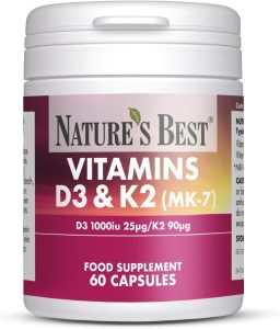 Nature’s Best Bone & Immune Boost – High Strength Vitamin D3 1000iu & K2 90µg – Optimal Support for Bones, Teeth, and Immune Function – UK Made – 60 Capsules (2 Months’ Supply)