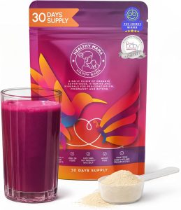 30-Days supply with Organic Superfoods, Probiotics + Folic Acid, Vitamin D3 & C – for Women, UK Made. A powerful, all-in-one daily supplement powder packed with organic superfoods, probiotics and high-quality, bioavailable vitamins – designed to support fertility, pregnancy, postpartum recovery, breastfeeding and long-term wellbeing with one convenient scoop.